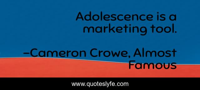 This page presents the quote "Adolescence is a marketing tool.". Author of this quote is Cameron Crowe, Almost Famous. This quote is about enthusiasm, film, almostfamous, inspirational,.