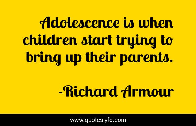 This page presents the quote "Adolescence is when children start trying to bring up their parents.". Author of this quote is Richard Armour. .