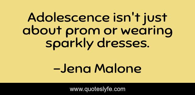 This page presents the quote "Adolescence isn't just about prom or wearing sparkly dresses.". Author of this quote is Jena Malone. This quote is about prom, dresses, adolescence,.