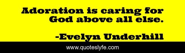 This page presents the quote "Adoration is caring for God above all else.". Author of this quote is Evelyn Underhill. This quote is about caring, adoration, above,.