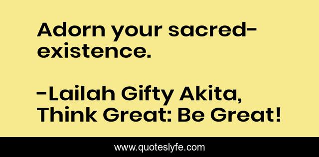 "Lailah Gifty Akita, Think Great: Be Great! Quotes." Quoteslyfe.com, 2025. Mon. 08 Dec. 2025. <https://www.quoteslyfe.com/quote/Adorn-your-sacred-existence-147690>.