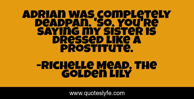 This page presents the quote "Adrian was completely deadpan. 'So. You're saying my sister is dressed like a prostitute.". Author of this quote is Richelle Mead, The Golden Lily. This quote is about mr-ivashkov, sage, braydon,.