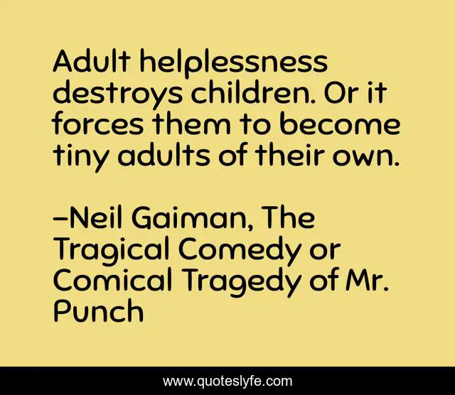 "Neil Gaiman, The Tragical Comedy or Comical Tragedy of Mr. Punch Quotes." Quoteslyfe.com, 2025. Sat. 06 Dec. 2025. <https://www.quoteslyfe.com/quote/Adult-helplessness-destroys-children-Or-it-forces-99274>.