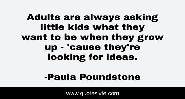 This page presents the quote "Adults are always asking little kids what they want to be when they grow up - 'cause they're looking for ideas.". Author of this quote is Paula Poundstone. .
