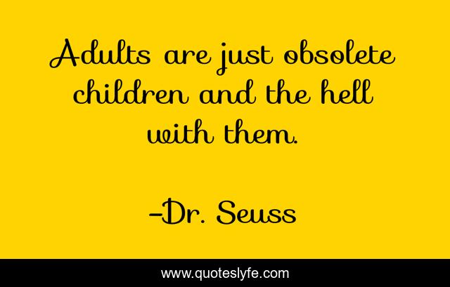 This page presents the quote "Adults are just obsolete children and the hell with them.". Author of this quote is Dr. Seuss. This quote is about adulthood, childhood,.