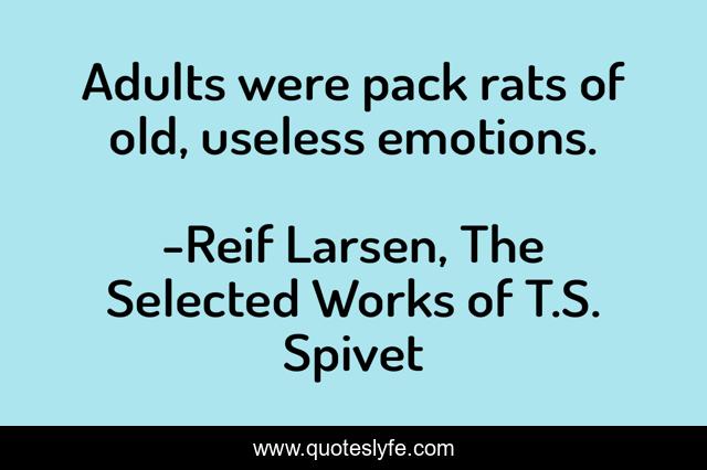 This page presents the quote "Adults were pack rats of old, useless emotions.". Author of this quote is Reif Larsen, The Selected Works of T.S. Spivet. .