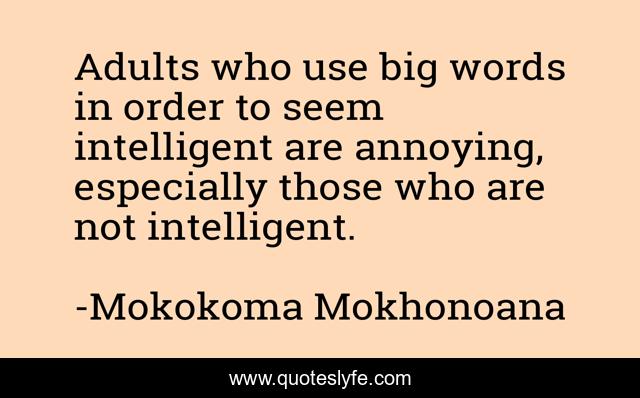 "Mokokoma Mokhonoana Quotes." Quoteslyfe.com, 2025. Sun. 07 Dec. 2025. <https://www.quoteslyfe.com/quote/Adults-who-use-big-words-in-order-22479>.