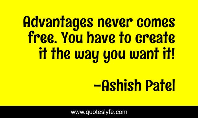 "Ashish Patel Quotes." Quoteslyfe.com, 2025. Mon. 08 Dec. 2025. <https://www.quoteslyfe.com/quote/Advantages-never-comes-free-You-have-to-222296>.