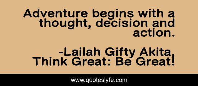 "Lailah Gifty Akita, Think Great: Be Great! Quotes." Quoteslyfe.com, 2025. Fri. 05 Dec. 2025. <https://www.quoteslyfe.com/quote/Adventure-begins-with-a-thought-decision-and-98767>.