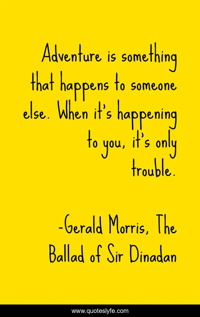 "Gerald Morris, The Ballad of Sir Dinadan Quotes." Quoteslyfe.com, 2025. Sat. 06 Dec. 2025. <https://www.quoteslyfe.com/quote/Adventure-is-something-that-happens-to-someone-82425>.