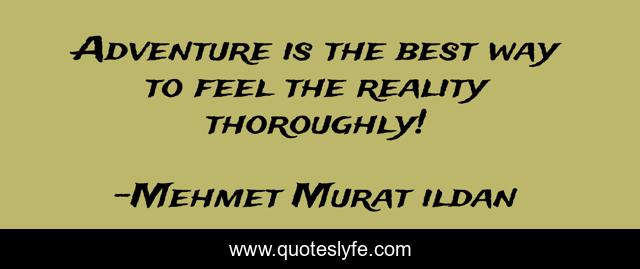 This page presents the quote "Adventure is the best way to feel the reality thoroughly!". Author of this quote is Mehmet Murat ildan. This quote is about ildan-words-of-wisdom, feel-the-reality, thorough, reality, adventure, feel-of-life,.
