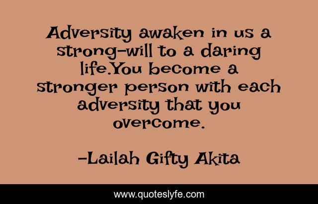This page presents the quote "Adversity awaken in us a strong-will to a daring life.You become a stronger person with each adversity that you overcome.". Author of this quote is Lailah Gifty Akita. .
