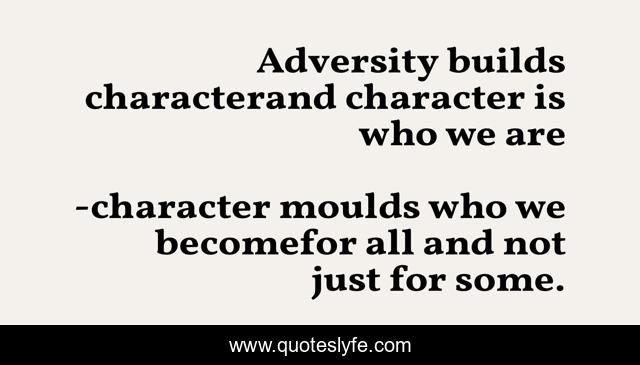 This page presents the quote "Adversity builds characterand character is who we are". Author of this quote is character moulds who we becomefor all and not just for some.. .