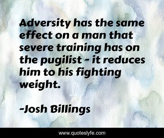 This page presents the quote "Adversity has the same effect on a man that severe training has on the pugilist - it reduces him to his fighting weight.". Author of this quote is Josh Billings. .