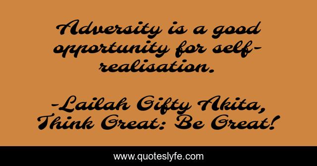 "Lailah Gifty Akita, Think Great: Be Great! Quotes." Quoteslyfe.com, 2025. Sun. 07 Dec. 2025. <https://www.quoteslyfe.com/quote/Adversity-is-a-good-opportunity-for-self-98787>.