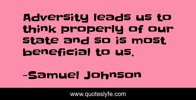 This page presents the quote "Adversity leads us to think properly of our state and so is most beneficial to us.". Author of this quote is Samuel Johnson. .