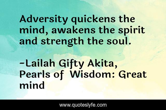 "Lailah Gifty Akita, Pearls of Wisdom: Great mind Quotes." Quoteslyfe.com, 2025. Mon. 08 Dec. 2025. <https://www.quoteslyfe.com/quote/Adversity-quickens-the-mind-awakens-the-spirit-63845>.