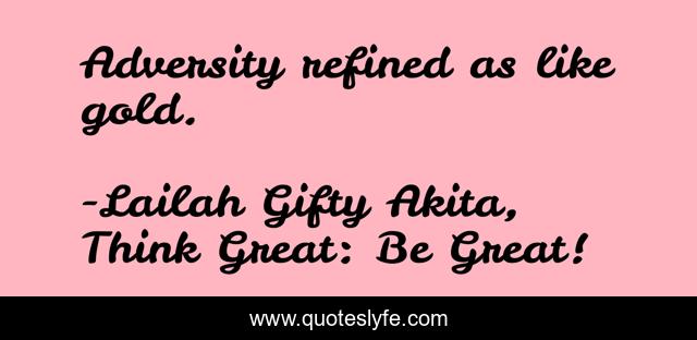 "Lailah Gifty Akita, Think Great: Be Great! Quotes." Quoteslyfe.com, 2025. Fri. 05 Dec. 2025. <https://www.quoteslyfe.com/quote/Adversity-refined-as-like-gold-95087>.