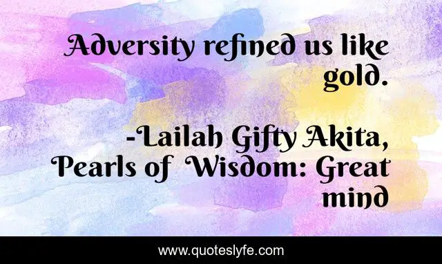 "Lailah Gifty Akita, Pearls of Wisdom: Great mind Quotes." Quoteslyfe.com, 2025. Fri. 05 Dec. 2025. <https://www.quoteslyfe.com/quote/Adversity-refined-us-like-gold-78182>.