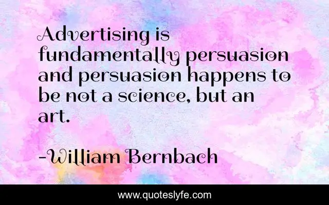 This page presents the quote "Advertising is fundamentally persuasion and persuasion happens to be not a science, but an art.". Author of this quote is William Bernbach. This quote is about persuasion, art, advertising,.
