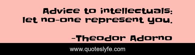 "Theodor Adorno Quotes." Quoteslyfe.com, 2025. Fri. 05 Dec. 2025. <https://www.quoteslyfe.com/quote/Advice-to-intellectuals-let-no-one-represent-298428>.