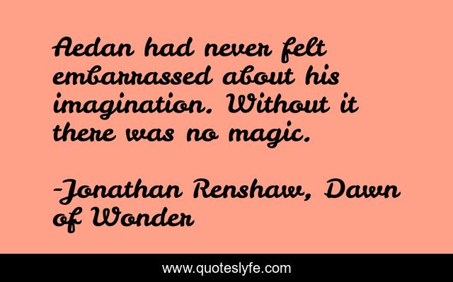This page presents the quote "Aedan had never felt embarrassed about his imagination. Without it there was no magic.". Author of this quote is Jonathan Renshaw, Dawn of Wonder. .