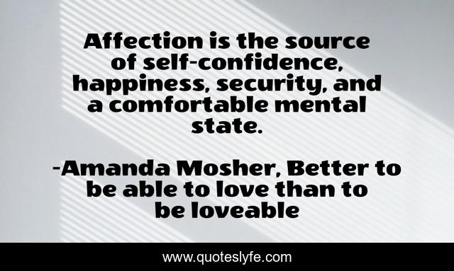 "Amanda Mosher, Better to be able to love than to be loveable Quotes." Quoteslyfe.com, 2025. Fri. 05 Dec. 2025. <https://www.quoteslyfe.com/quote/Affection-is-the-source-of-self-confidence-144254>.