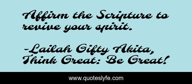 "Lailah Gifty Akita, Think Great: Be Great! Quotes." Quoteslyfe.com, 2025. Fri. 05 Dec. 2025. <https://www.quoteslyfe.com/quote/Affirm-the-Scripture-to-revive-your-spirit-78480>.