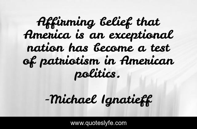 This page presents the quote "Affirming belief that America is an exceptional nation has become a test of patriotism in American politics.". Author of this quote is Michael Ignatieff. This quote is about politics, american, america,.