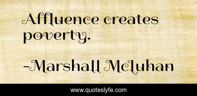 This page presents the quote "Affluence creates poverty.". Author of this quote is Marshall McLuhan. This quote is about creates, poverty, affluence,.