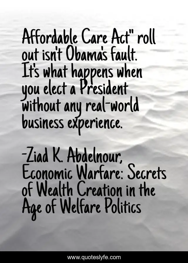 "Ziad K. Abdelnour, Economic Warfare: Secrets of Wealth Creation in the Age of Welfare Politics Quotes." Quoteslyfe.com, 2025. Mon. 08 Dec. 2025. <https://www.quoteslyfe.com/quote/Affordable-Care-Act-roll-out-isn-t-128841>.