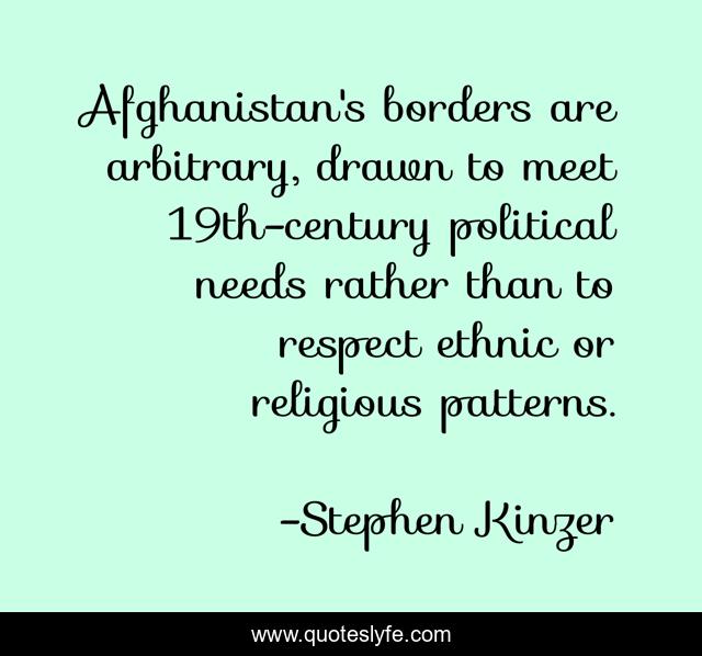This page presents the quote "Afghanistan's borders are arbitrary, drawn to meet 19th-century political needs rather than to respect ethnic or religious patterns.". Author of this quote is Stephen Kinzer. This quote is about borders, political, ethnic,.