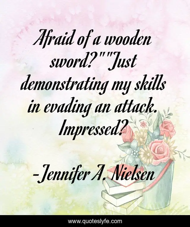 "Jennifer A. Nielsen Quotes." Quoteslyfe.com, 2025. Fri. 05 Dec. 2025. <https://www.quoteslyfe.com/quote/Afraid-of-a-wooden-sword-Just-demonstrating-209967>.