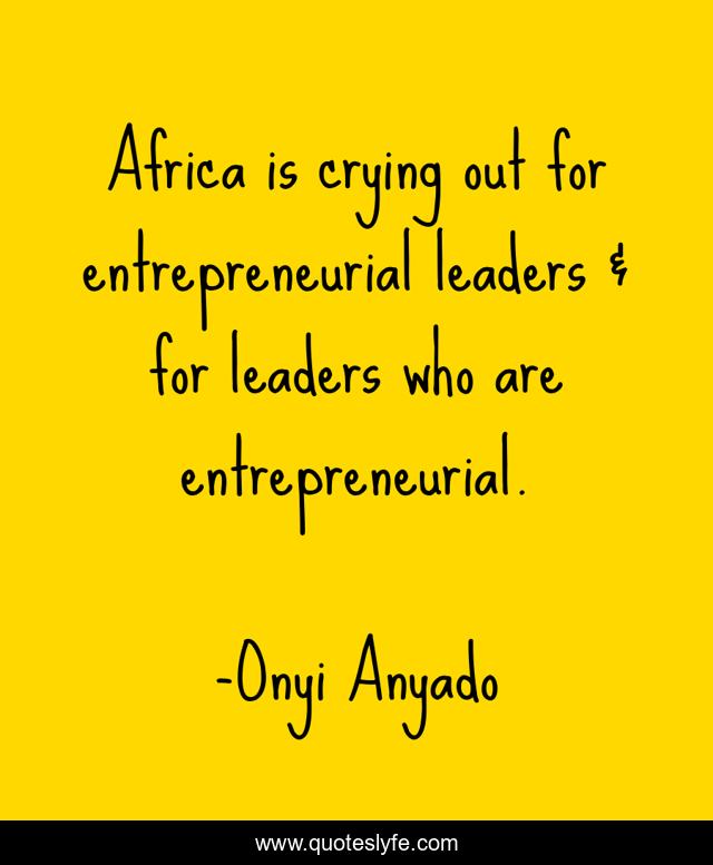 This page presents the quote "Africa is crying out for entrepreneurial leaders & for leaders who are entrepreneurial.". Author of this quote is Onyi Anyado. This quote is about the-tony-elumelu-foundation, leadership-development, africa, african-leaders, entrepreneurship, entrepreneur, entrepreneurial, leadership, tony-elumelu,.