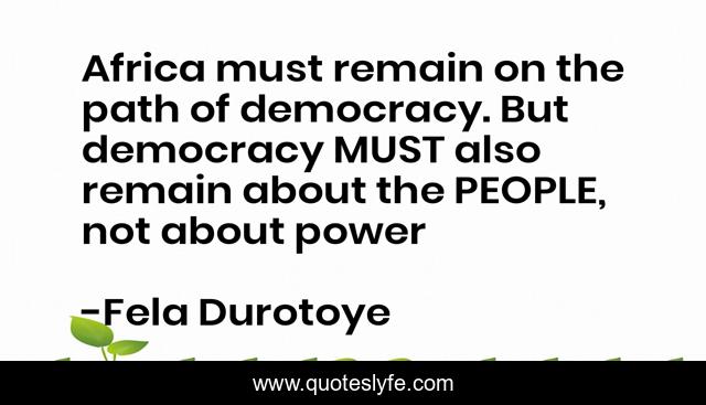 This page presents the quote "Africa must remain on the path of democracy. But democracy MUST also remain about the PEOPLE, not about power". Author of this quote is Fela Durotoye. This quote is about military, leadership, africa, war,.