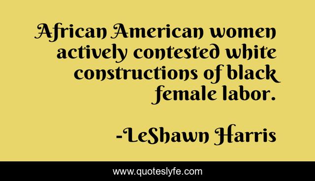 This page presents the quote "African American women actively contested white constructions of black female labor.". Author of this quote is LeShawn Harris. This quote is about work, working-class,.
