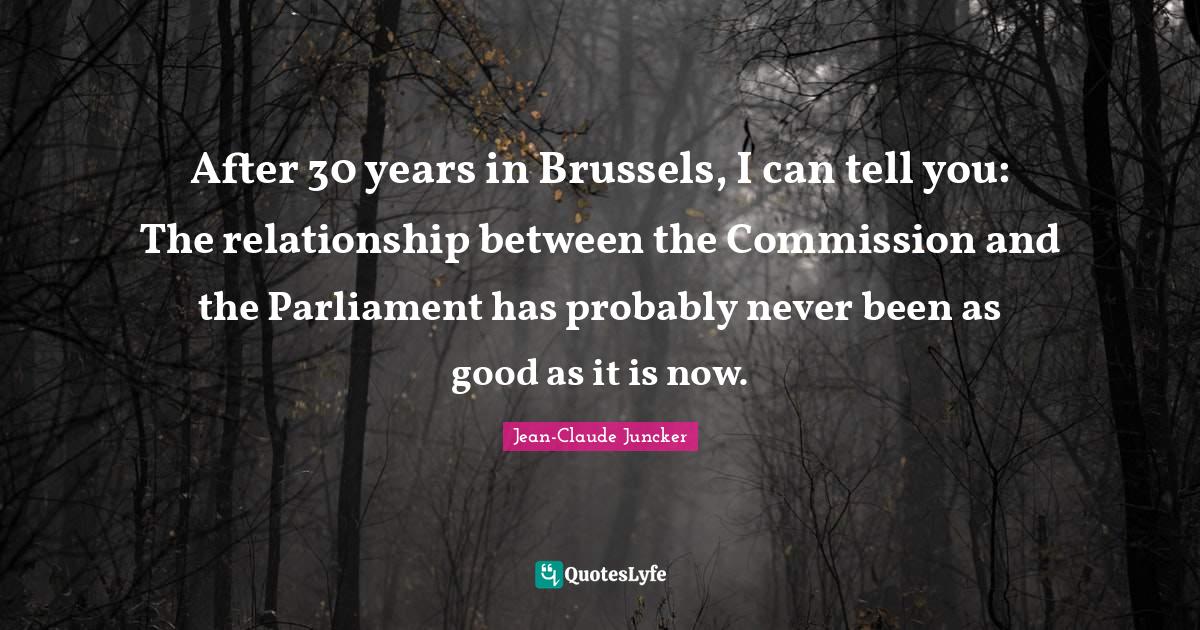 This page presents the quote "After 30 years in Brussels, I can tell you: The relationship between the Commission and the Parliament has probably never been as good as it is now.". Author of this quote is Jean-Claude Juncker. This quote is about years, parliament, relationship, brussels, i can,.
