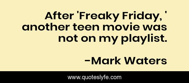 This page presents the quote "After 'Freaky Friday, ' another teen movie was not on my playlist.". Author of this quote is Mark Waters. This quote is about friday, freaky, after,.