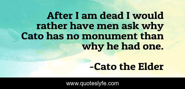 This page presents the quote "After I am dead I would rather have men ask why Cato has no monument than why he had one.". Author of this quote is Cato the Elder. This quote is about celebrities, fame,.