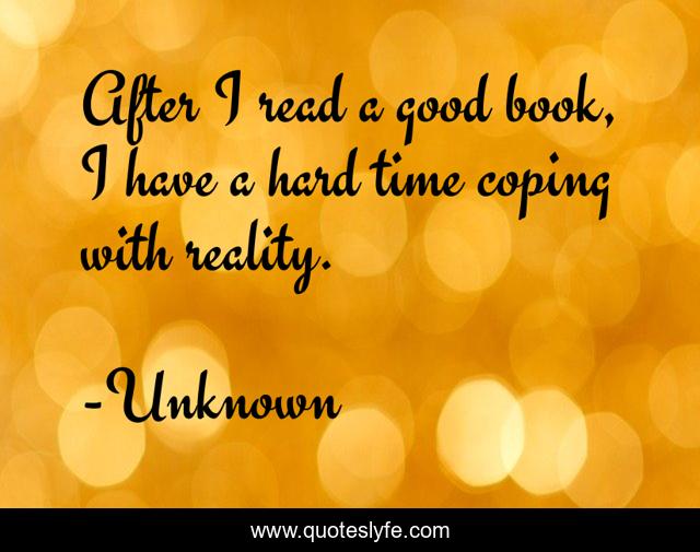 This page presents the quote "After I read a good book, I have a hard time coping with reality.". Author of this quote is Unknown. This quote is about reading-books, pain, reality,.