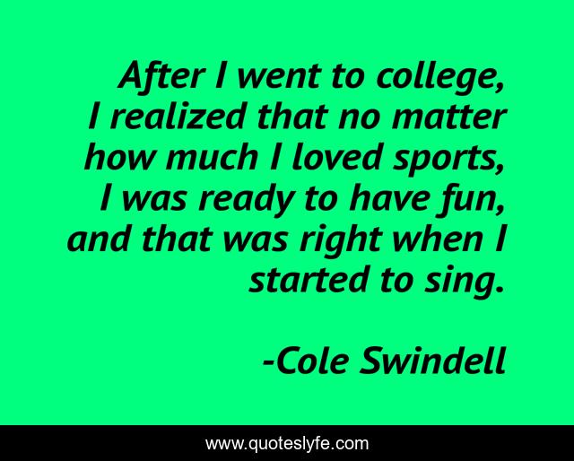 This page presents the quote "After I went to college, I realized that no matter how much I loved sports, I was ready to have fun, and that was right when I started to sing.". Author of this quote is Cole Swindell. This quote is about fun, loved, college,.