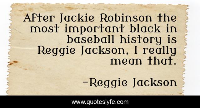 This page presents the quote "After Jackie Robinson the most important black in baseball history is Reggie Jackson, I really mean that.". Author of this quote is Reggie Jackson. This quote is about baseball, black,.