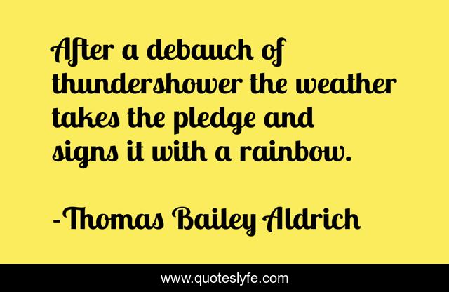This page presents the quote "After a debauch of thundershower the weather takes the pledge and signs it with a rainbow.". Author of this quote is Thomas Bailey Aldrich. .