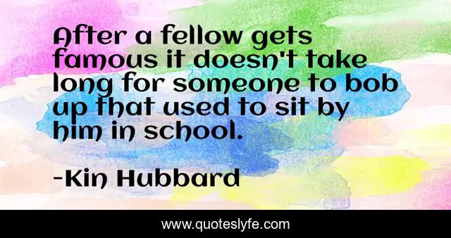 This page presents the quote "After a fellow gets famous it doesn't take long for someone to bob up that used to sit by him in school.". Author of this quote is Kin Hubbard. This quote is about school, him, long,.