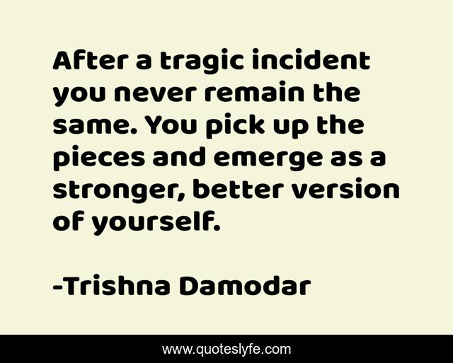 This page presents the quote "After a tragic incident you never remain the same. You pick up the pieces and emerge as a stronger, better version of yourself.". Author of this quote is Trishna Damodar. .