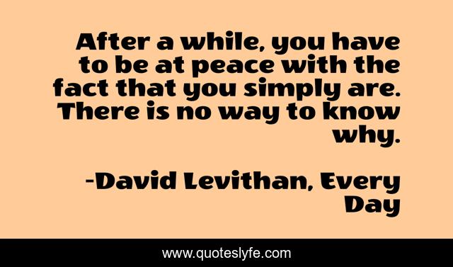 This page presents the quote "After a while, you have to be at peace with the fact that you simply are. There is no way to know why.". Author of this quote is David Levithan, Every Day. This quote is about self, identity,.