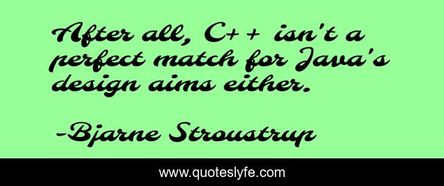 This page presents the quote "After all, C++ isn't a perfect match for Java's design aims either.". Author of this quote is Bjarne Stroustrup. This quote is about perfect, either, match,.