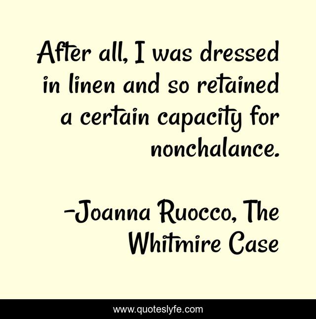 "Joanna Ruocco, The Whitmire Case Quotes." Quoteslyfe.com, 2025. Fri. 05 Dec. 2025. <https://www.quoteslyfe.com/quote/After-all-I-was-dressed-in-linen-245796>.