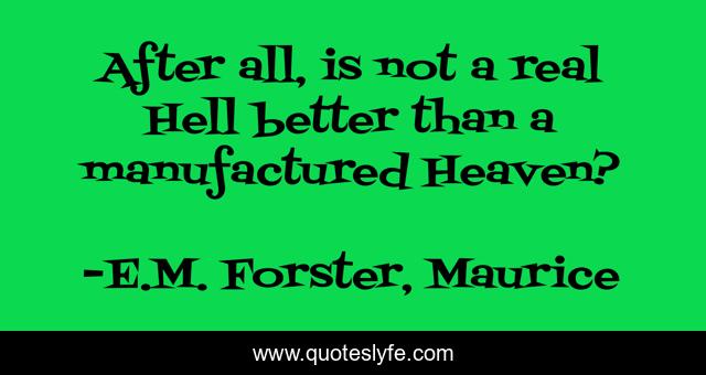 This page presents the quote "After all, is not a real Hell better than a manufactured Heaven?". Author of this quote is E.M. Forster, Maurice. This quote is about hell, heaven, love, happiness, affection,.