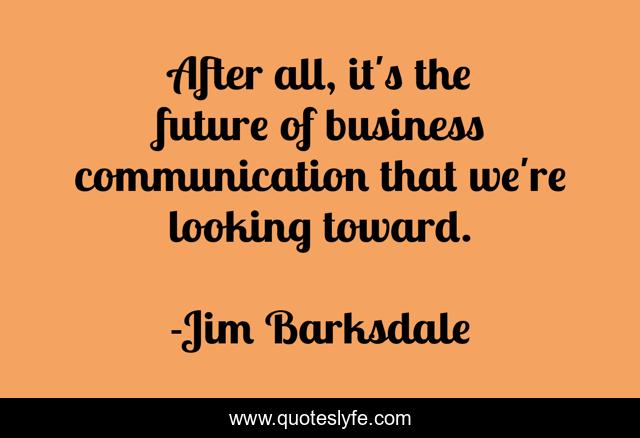 This page presents the quote "After all, it's the future of business communication that we're looking toward.". Author of this quote is Jim Barksdale. This quote is about communication, future,.